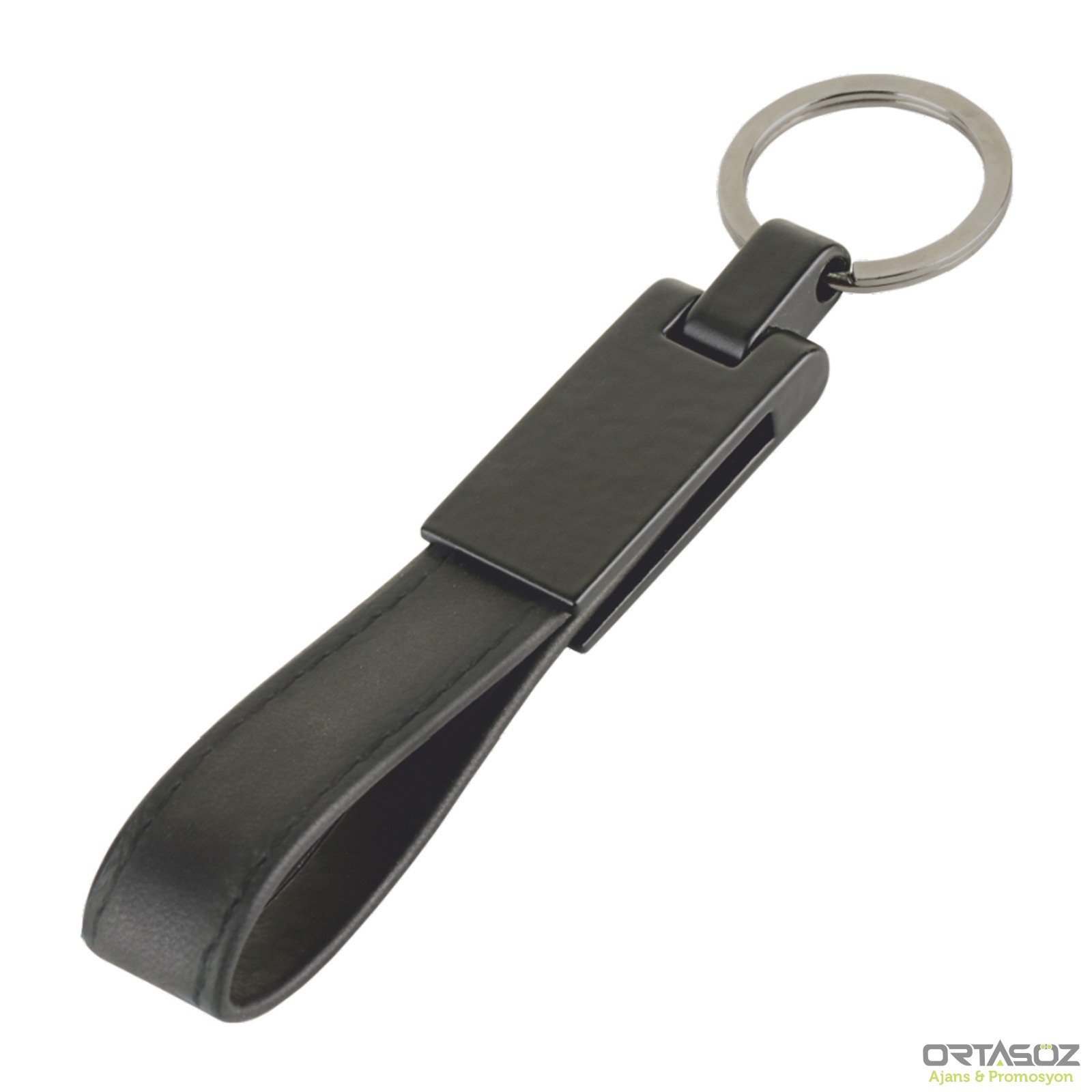 4754 DÜZOVA SİYAH METAL - DERİ ANAHTARLIK